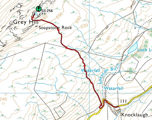 | Bike route out and return via unmarked track through NS 575473 (2014 mapping |